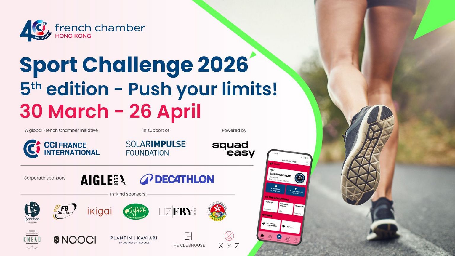 The French Chamber in Hong Kong is delighted to invite you to take part in the Global Sport Challenge 2026, now in its 5th edition. This international initiative, organised in partnership with 18 French Chambers worldwide, is designed to inspire healthier lifestyles, foster team spirit, and connect professionals across borders.