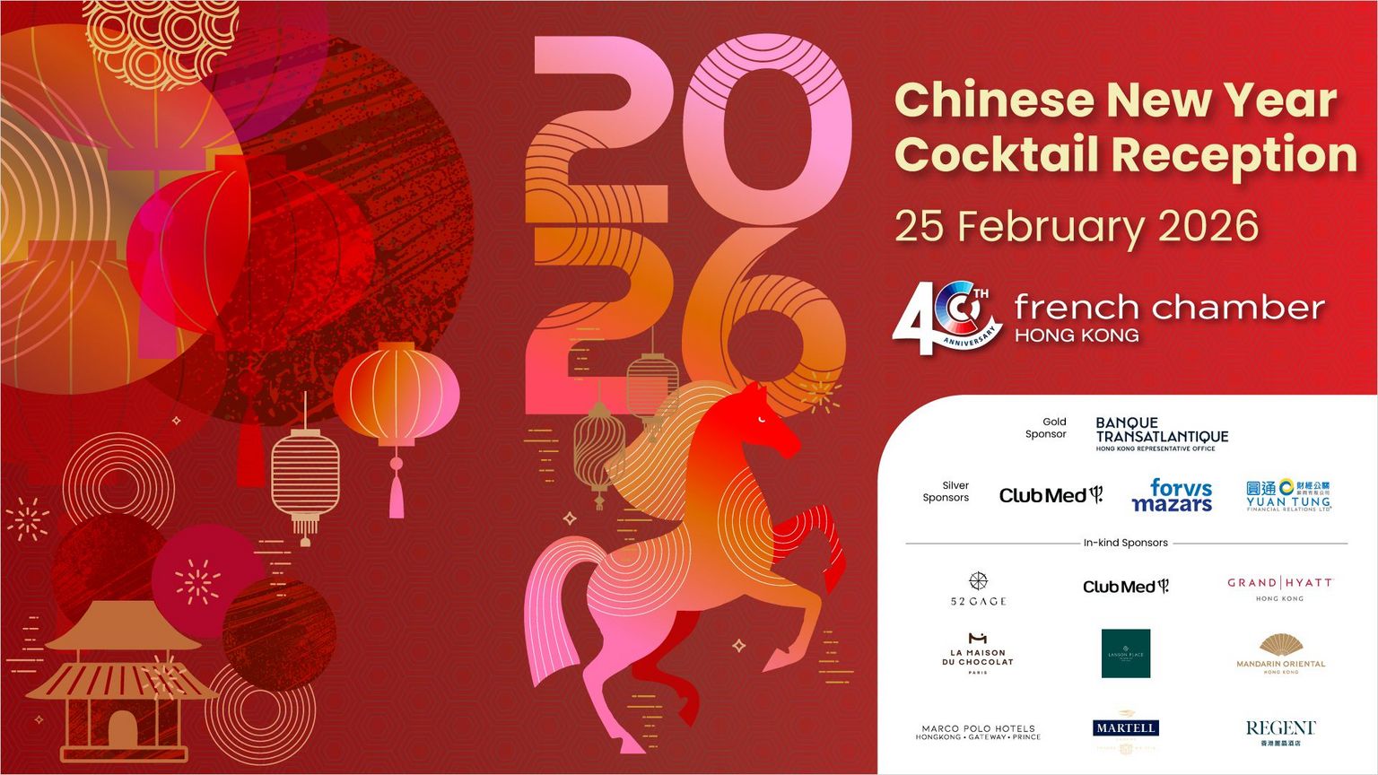 Celebrate the Year of the Horse with us at a special Chinese New Year Cocktail Reception!