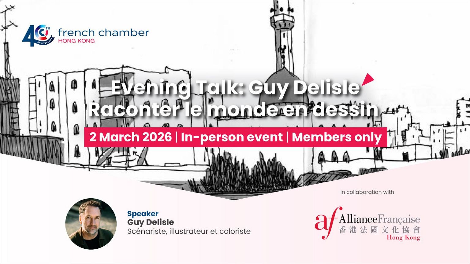 A l’occasion du mois de la Francophonie, rejoignez-nous pour une discussion inspirante autour du parcours de Guy Delisle.