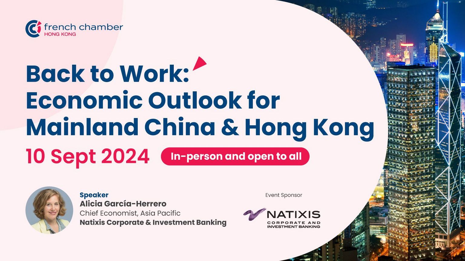 During this In Person session, we will have the pleasure of hearing from Alicia Garcia Herrero, Chief Economist for Asia Pacific, Natixis Corporate & Investment Banking and Honorary Economist at the French Chamber in Hong Kong, as she shares her valuable insights into the economic outlook for Hong Kong and mainland China, and its impact on the business environment.