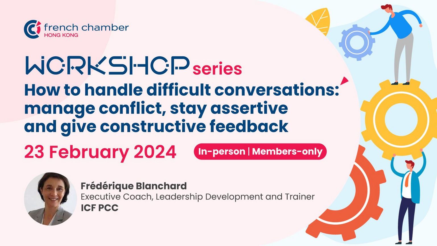 Join this in-person workshop session on assertiveness and conflict management led by Frédérique Blanchard, Leadership Coach and Trainer.
