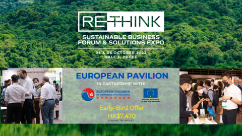 EuroCham, together with EU Office, will be hosting a European Pavilion at Rethink HK fair on 5-6 October, gathering companies operating in the sustainable landscape, both showcasing solutions and products.