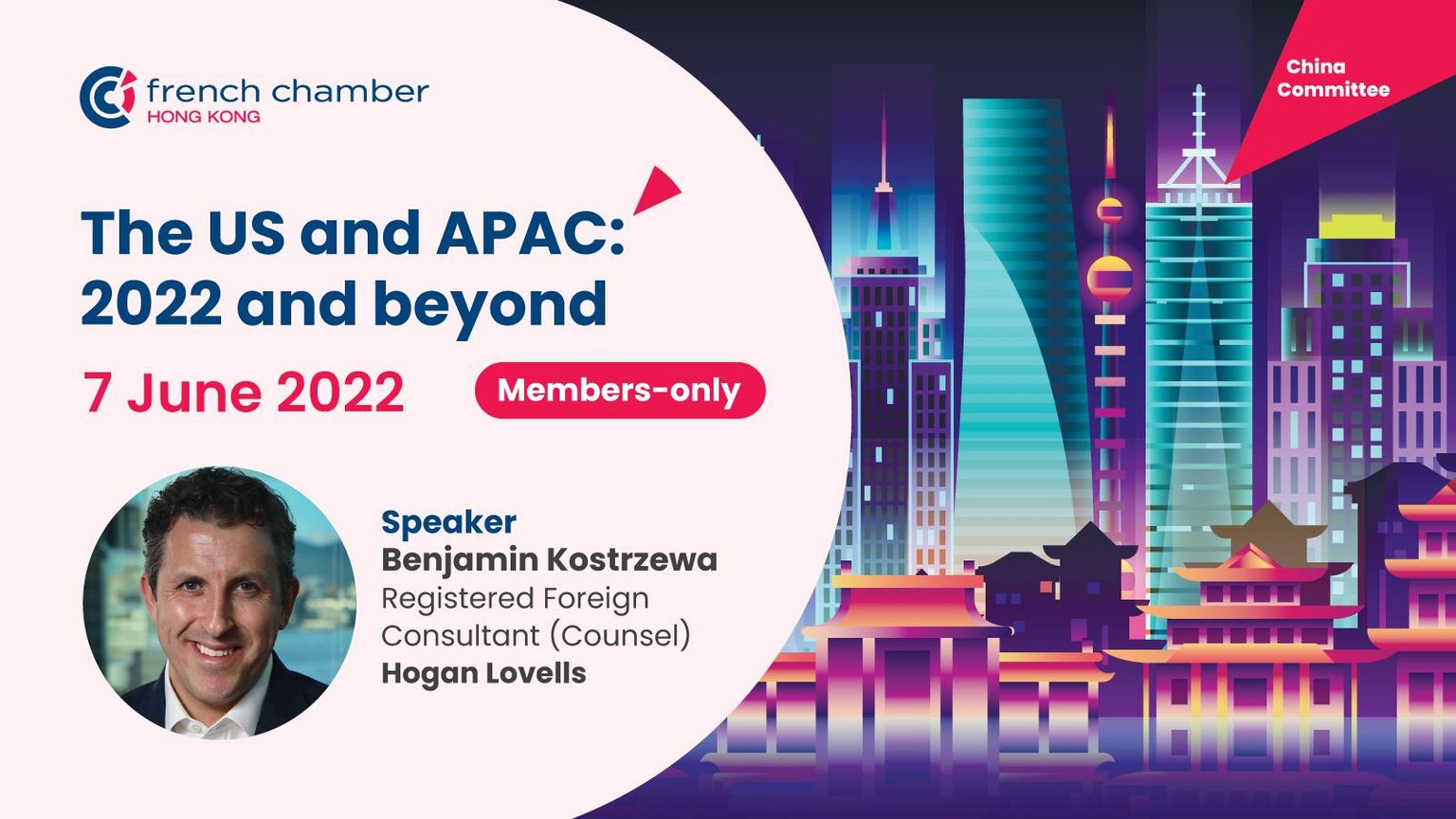 Join this online China Committee to hear from Benjamin Kostrzewa from Hogan Lovells about 'The United States and APAC: 2022 and beyond'.