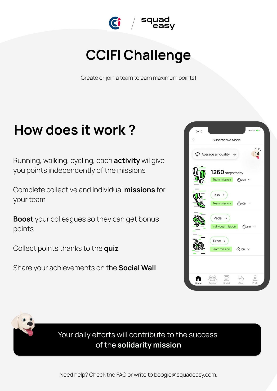 The challenge will take place on an application provided by French startup SQUADEASY, making for a fully-integrated and seamless experience where you can track your team’s progress against other global competitors.