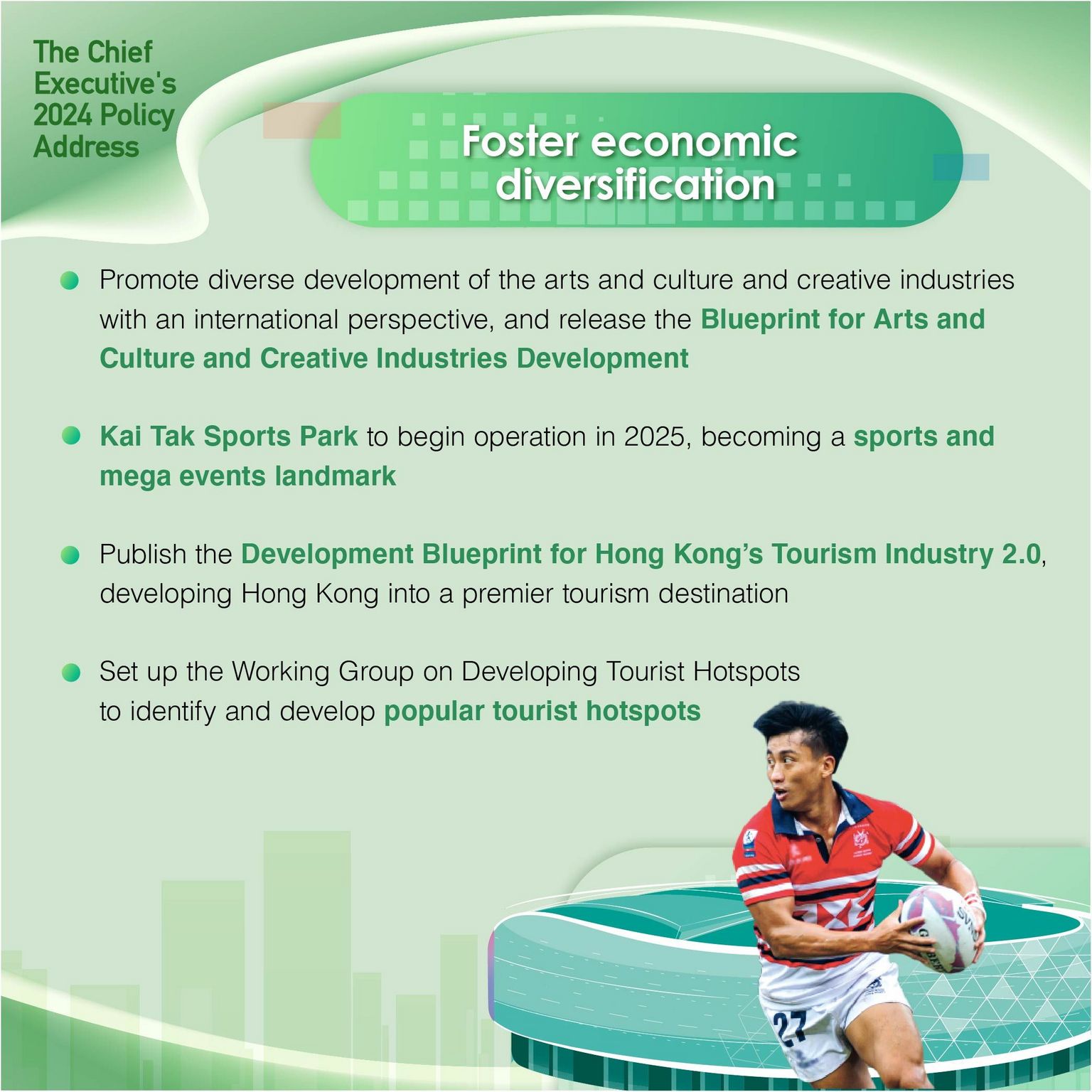 - Establish Kai Tak Sports Park as a sports and mega events landmark