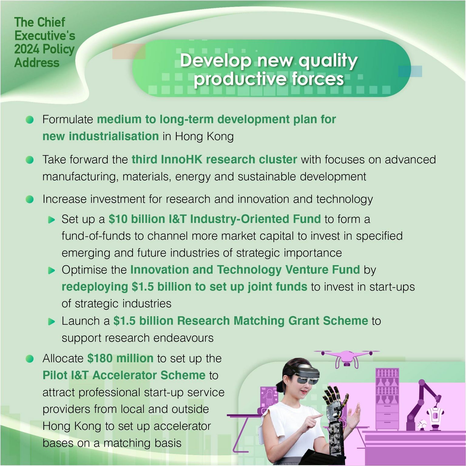 - Optimise Innovation and Technology Venture Fund by redeploying $1.5 billion to set up joint funds to invest in start-ups of strategic industries