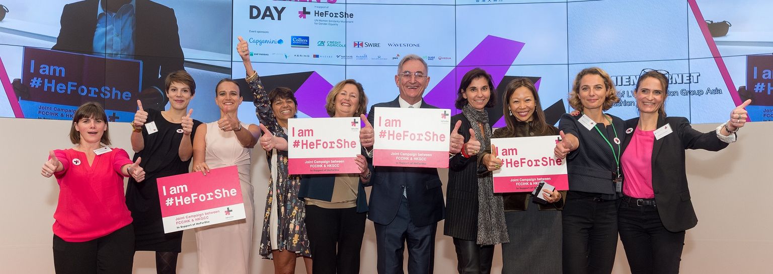 Last night over 500 guests joined us for a conference in support of the UN initiative HeForShe, organised by the French Chamber of Commerce (FCCIHK) and the Hong Kong General Chamber of Commerce (HKGCC) in partnership with Hong Kong Exchanges and Clearing Limited (HKEX) at their newly revamped auditorium.